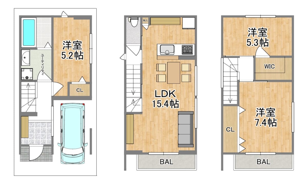 - 限られた敷地を最大限に活かした都市型3階建て!