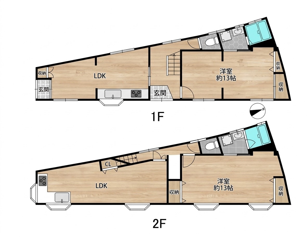 ☆1階、2階にそれぞれにキッチン・浴室・トイレがあり、  ゆとりある間取りで住居兼アトリエや二世帯利用など多用途に対応!
